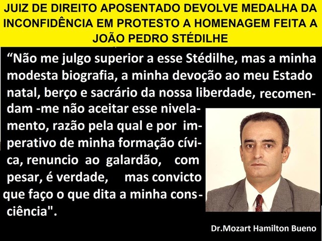 DEVOLUÇÃO DE MEDALHA DA INCONFIDÊNCIA |